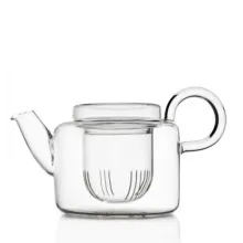 Théière en borosilicate faite main par Marco Sironi pour Ichendorf : design en verre élégant avec filtre alliant légèreté, utilité et art.