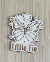 Attache tétine personnalisée dans les tons brun/beige avec le prénom et un nounours. Réalisée par Little Fie