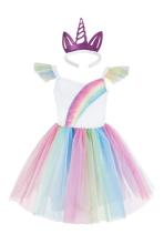 Avec cette robe princesse licorne, votre enfant se met aux couleurs de l'arc-en-ciel. Quoi de mieux pour faire rayonner son imagination ? Avec le diadème inclus, plus de doute permis sur son identité : elle est une licorne prête à déambuler vers des contrées féériques !