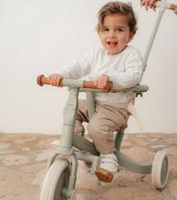 Hop, time to go out! With this beautiful soft green with brown detailed 4-in-1 balance bike, the first (bicycle) adventures are made like this. Ideal to get to know cycling in a playful way. Is your little one not ready for walking or cycling? No problem, with the push bar you help a hand. Safety for everything, thanks