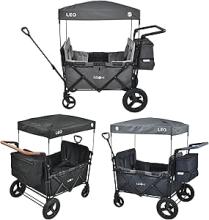 Remorque FableKids Leo X4Plus avec toit | Chariot de transport pliable | Chargeable jusqu'à 20 kg par siège | Harnais 4X 5 points | Roues tout-terrain 360° | Frein à pied | Oxford 600D| Grille : Amazon.com.be: Jouets
