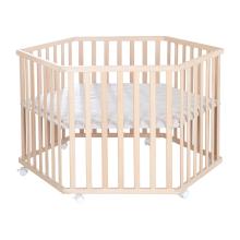 Parc en hêtre 'Lil Planet' avec insert gris argenté » Forme hexagonale ✓ Réglable en 3 hauteurs ✓ Robuste & moderne ➔ Découvrez-le maintenant !