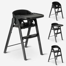 Chaise haute de luxe noire pliable pour la maison et les déplacements, avec un design compact et léger et un nettoyage facile. Chaise haute peu encombrante.