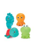 Tortue, pieuvre, hippocampe et grenouille s'invitent dans le bain de votre bébé ! Adaptés à ses petites mains, ces 4 aspergeurs colorés vont rendre le rituel du bain plus amusant ! En plus de découvrir les effets de l'eau lorsque l'eau gicle de ces compagnons, votre bébé pourra se lancer dans la création de ses propres personnages car les têtes et corps sont amovibles et interchangeables. Hippopieuvre, tortouille... sa motricité se développe et son imagination va faire des bonds ! Pratique, ces aspergeurs sont faciles à sécher et à nettoyer.