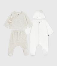 Coffret cadeau bébé en velours uni chez Petit Bateau.