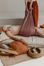 Massage post-partum pour Natalia. Un moment détente pour se reconnecter à son corps. Un moment suspendu pour se ressourcer, resserrer son bassin et se réénergiser.