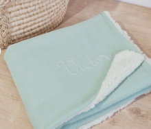 Couverture 100% sherpa de coton bio achetée sur le site Lange de Bébé. Fabriquée en France.