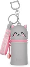 Legami - Porte-monnaie avec porte-clés Mini Kawaii, avec anneau en spirale, mousqueton et cordon de poignet, en silicone, 5 x 12 x 5 cm, gris, KITTY