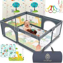 EveryKip Baby Playpen 120 x 120 cm | Modular Children's Playpen with Mat | Baby Play Barrier | Mat and Rings Included (Grey) : Amazon.fr: Baby Products