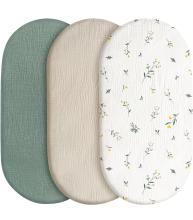 3er-Pack Bettlaken Spannbettlaken,Matratzenschoner für Laufgitter,100% Musselin-Baumwolle,Weiche und Premium-Qualität universelle Spannbettlaken für Kinderwagen. Geschenk zur Geburt(Florid)