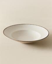 Assiette à pâtes en porcelaine. Modèle de couleur avec bord antique contrastant. - Assiettes creuses -