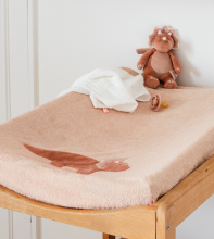Le matelas à langer rose poudré de la collection Popsie, Gigi & Louli en matière bien absorbante rebrodée de Popsie le tricératops est pleinement adapté à la morphologie de bébé, ce qui lui assure un confort optimal.