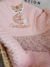 Couverture bébé entiérement personnalisée. Choix des tissus, de la couleur de broderie, du motif en taille 70x95cm (naissance) ou 95x140cm