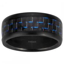 Bague pour homme en acier 316L inoxydable, PVD noir brillant et carbone bleu. La bague Stanis est un bijou spécialement créé pour t'accompagner au quotidien. Réalisé en acier inoxydable et en carbone, des matériaux de haute qualité, il résiste à l'épreuve du temps et garde son aspect neuf. Il bénéficie d'une garantie de 2 ans. Une bague unique en son genre. Les incrustations en carbone bleu mettent ce bijou Phebus en valeur, en lui conférant un style très moderne et original. Un accessoire précieux pour compléter tes tenues d'homme avant-gardiste !.