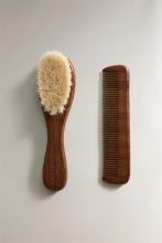 Ensemble bébé de peigne et brosse en bois avec de petites fleurs