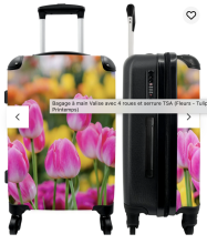 Valise rose avec des fleurs pour aller dormir chez les copains, elle aime beaucoup celle en photo