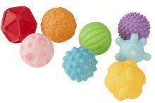 Idéales dès 6 mois, ces 8 balles texturées Prémaman aux formes variées et aux couleurs vives stimulent les sens de bébé tout en l’amusant.