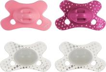 Difrax Tétine 0 à 6 Mois - Sucette Naissance avec Tétine Silicone - Rose & Violet + Glow in the Dark Tétines - 4 Pièces