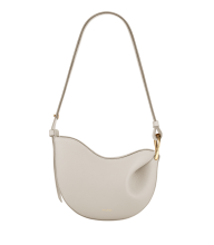 Obtained by modeling the leather on a wooden mould, the “Tonca” bag’s roundness is shaped by its folds that blend into a twisted metal buckle. The bag’s contrasting body and shoulder strap feature smooth and textured leathers.