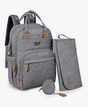 Conception tout-en-un: un sac à dos à langer de grande taille:( 42 x 20 x 30 cm) avec un matelas à langer, des sangles de poussette, un porte-tétine, une pochette à lingettes avec fermeture à glissière, une boucle porte-clés et 5 poches isolées. 2 grands compartiments et 18 poches aux bons endroits.