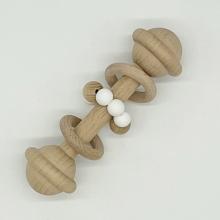 Sur un anneau de billes colorées, bébé pourra faire la connaissance d’une girafe qui dissimule du papier froissé, d’un dinosaure qui fait pouêt-pouêt, il y découvrira aussi un hochet en forme d’arc-en-ciel et une banane à mordiller quand ses petites dents le feront souffrir.