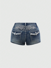 Short taille basse avec décoration de strass et broderie d'ailes