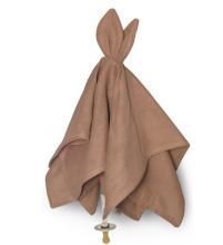 Adorable doudou en coton doux Snoppa de Saga Copenhagen. Le doudou a de drôles d'oreilles de lapin, le tissu est assez grand pour faire des nœuds aux extrémités que vous pouvez tripoter et est équipé d'une boucle velcro pour attacher une tétine.