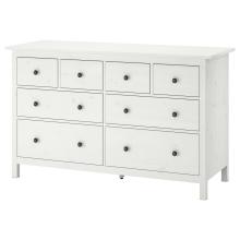 HEMNES Commode 8 tiroirs, teinté blanc, 160x96 cm. Cette belle commode au design traditionnel a été fabriquée en bois issu de sources gérées durablement. Elle est équipée de tiroirs coulissants et silencieux.