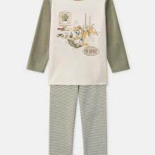 Haut bicolore, imprimé Chien et col contrasté Bas rayé Contient du coton biologique. Contient au moins 20% de matières recyclées