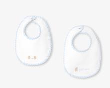 Ce duo de bavoirs en éponge douce accompagnera les premiers repas de bébé avec tendresse. Faciles à attacher grâce à leur pression, glissés dans le sac à langer et à garder à portée de main au quotidien, ils sont parfaits pour composer le premier trousseau de bébé.