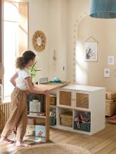 Ingénieux, ce bureau dispose d'un meuble 6 cases pivotant à 90 degrés ! Une fois le travail terminé, le meuble à cases se range sous le bureau pour ne faire qu'un et gagner de la place dans votre pièce. Son design s