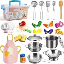 Sundaymot Ensemble de Cuisine pour Enfant, Ustensiles de Cuisine Jouet en Bois avec Acier Inoxydable Casseroles et Poêles,Tablier et Toque, Chef Jeu de rôle pour Garçons et Filles 3 Ans (24 PCS) : Amazon.fr: Jeux et Jouets