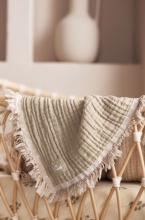 Cette couverture en gaze de coton certifiée GOTS offre non seulement de la douceur et du style, mais aussi de la polyvalence. Cette couverture est ornée d'une jolie frange à l'extérieur pour une touche de charme supplémentaire. Avec un côté ivoire neutre et un choix de Moonstone ou de vert olive sur l'autre côté, cette couverture offre polyvalence et élégance. Avec un indice TOG de 1.0, cette couverture est parfaite pour garder votre bébé au chaud, que ce soit dans son lit, son landau ou simplement pour l'envelopper.