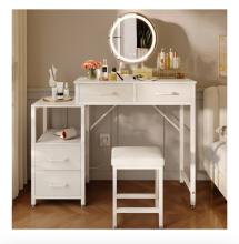 ODK Desk with Adjustable LED Mirror, Makeup Table with 4 Drawers and Removable Side Cabinet, Compact Dressing Table Set with Stool, Dressing Table with LED Lighting, White, 80 x 40 x 130 cm : Amazon.fr: Home & Kitchen