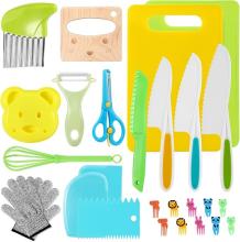 27 Pcs Kids Kitchen Knives Set, Safety Knife Set for Fruit or Vegetables, Montessori Kids Knife with Wooden Knife, Chopping Board, Christmas Gift or Anniver Gift : Amazon.fr: Home & Kitchen