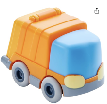 Les petits véhicules de la marque Haba, je les adore. Et leur petit plus, c'est qu'il vont avec un circuit. A l'heure actuelle, je suis trop petit pour utiliser le circuit mais déjà les véhicules c'est chouettes!