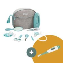 Une trousse de soin complète pour bébé avec 9 accessoires ! Facilement transportable grâce à sa hanse. Nombreuses poches et élastiques pour ranger les affaires de bébé. Acheté neuf.