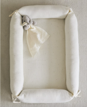Lit bébé nid matelassé de forme rectangulaire pour enfant. Confectionné en coton et orné de motifs lune. Sans coussin de garnissage.