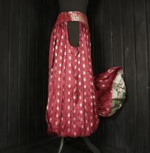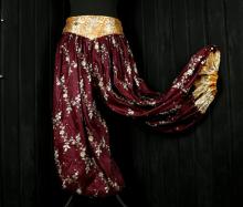 JIANNA Iridescent WINE RED & BOTTLE GREEN shades, with WINE RED detailing, and METALLIC ANTIQUE PALE GOLD embellishments. Our Dakini Pants bring magic to your movement. Perfect for dance, yoga, performance and festivals. This design is elasticated throughout the back of the waist allowing the size to be immensely flexible. There is a slit on the thighs allowing a flash of skin to be seen. Perfect over tights or leggings if you don't feel so daring. Designed to be worn low over the hips, the pants billow over the ankle.