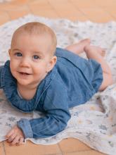 Pratique ancestrale, l'emmaillotage permet de maintenir bébé dans une position rassurante, en l'enveloppant dans un carré de tissu. Le maintien de ses jambes et de ses bras près du corps évite les mouvements incontr