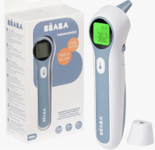 BÉABA, Thermomètre Frontal Digital Sans Contact Infrarouge, Enfant, Bébé, Adulte, Mesure Frontale, Auriculaire, Ambiante, Lecture Code Couleur, LCD, Alerte Fièvre, Fonction Mémoire, Thermospeed