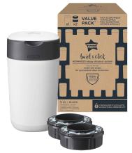 Tommee Tippee Poubelle à couches Twist & Click, Pack Exclusif avec x2 Recharges incluses, Protection anti-odeurs et anti-germes garantie, Grande capacité