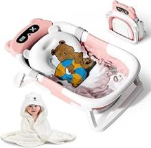 Kerbwry Baignoire pour bébé avec thermomètre pour nouveau-né à tout-petit, baignoire de voyage pliable avec coussin doux, baignoire pliable pour bébés de 0 à 24 mois, rose : Amazon.ca: Bébé et Puériculture