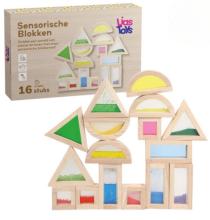 LiasToys® - 16 blocs sensoriels en bois remplis de sable coloré, d'eau et de perles - speelgoed Montessori - WoodentoysLia
