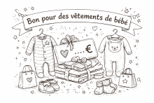 Avec ce bon, vous participez librement à l’achat de vêtements pour bébé, que nous choisirons au fil de nos envies et de nos besoins dans les boutiques qui nous plaisent.
