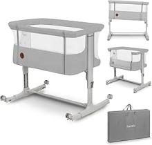 LIONELO Aurora Lit Bébé 3 en 1 – Lit Cododo, Berceau & Lit Parapluie, 0-6 Mois (0-9 kg), Réglable 5 Hauteurs, Matelas Confort T25, Ventilation Panoramique, Facile à Plier, Sac de Transport.