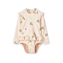 Le maillot de bain manches longues bébé fille Liewood Sille est un joli maillot de bain anti-uv qui protège les petites filles des coups de soleil.