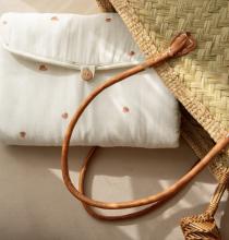 Le matelas à langer nomade à emporter partout ! 100% coton certifié OEKO-TEX® Une gaze de coton toute douce à l’extérieur et un tissu éponge à l’intérieur Dimensions déplié : 60x80 cm, la taille optimale pour pouvoir changer bébé sans problème Dimensions plié : 30x42 cm, la taille idéale pour le glisser dans votre sac Le petit + pratique : une pochette de rangement pour glisser vos lingettes au niveau de l’appui tête de bébé.