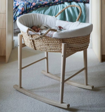 Couffin en fibres naturelles et balancelle en bois dès la naissance avec housse en coton et matelas