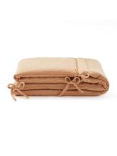 Apportez une touche chaleureuse à la chambre de bébé avec ce tour de lit en double gaze de coton Oeko-Tex coloris camel. Doux et légèrement froissé, il s'adapte aux lits 60x120 cm et 70x140 cm grâce à ses soufflets. Dimensions : 30x190 cm, lavable à 30°C
